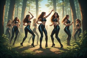 Then, almost magically, she changed into a shiny red wetlook dress. It was as if a lightning bolt of boldness had struck. The black had been mysterious and sleek; the red was fiery, playful, and impossible to ignore. She twirled slightly to show off the flexibility and shine of the new outfit, flexing the material with the same pride as before. Every fold, shimmer, and curve was now a celebration in red.