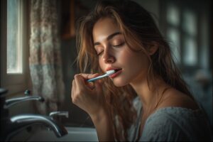Picture this: a quiet bathroom, soft morning light coming through the window, and a bathtub filled with warm water and gentle foam. In the middle of it all is a cheerful lady wearing a simple swimsuit, her wet hair slightly messy in that carefree “I just woke up but I’m still fabulous” way.